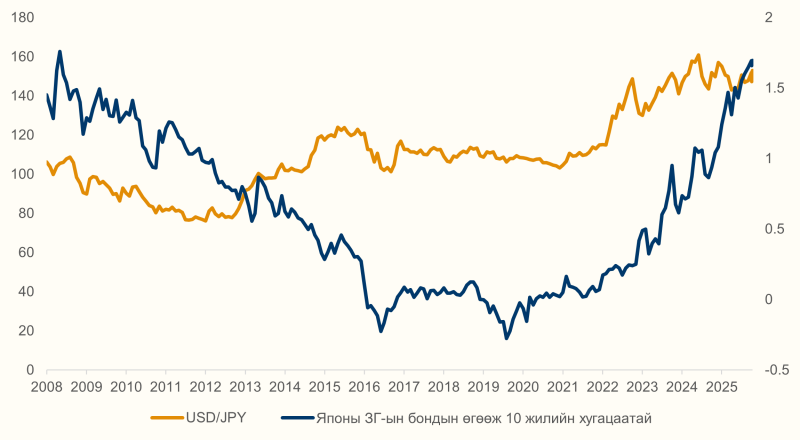 10-р сарын 4-ний өдөр Японы Либерал ардчилсан намын (LDP) ерөнхийлөгчийн сонгуульд Санаэ Такайчи ялалт байгуулж, Японы дараагийн Ерөнхий сайд болох нөхцөлийг бүрдүүлсэнтэй холбоотойгоор өнгөрөгч долоо хоногт Японы хөрөнгийн зах зээл огцом өсч, Nikkei 225 индекс 10-р сарын 3-ны Баасан гарагаас 10-ны Баасан гарагийн хооронд 5.07%-иар, TOPIX индекс 2.19%-иар нэмэгджээ. Тус сонгуулийн үр дүн хөрөнгө оруулагчдад хувьцааны зах зээлийн эерэг дохиог өгсөн бол, эсрэгээрээ төсвийн тэлэлт болон мөнгөний зөөлөн бодлого үргэлжилнэ гэсэн хүлээлтээс үүдэн иений ханш ам.долларын эсрэг 147.5-аас 153.07 орчим хүртэл суларсан байна.