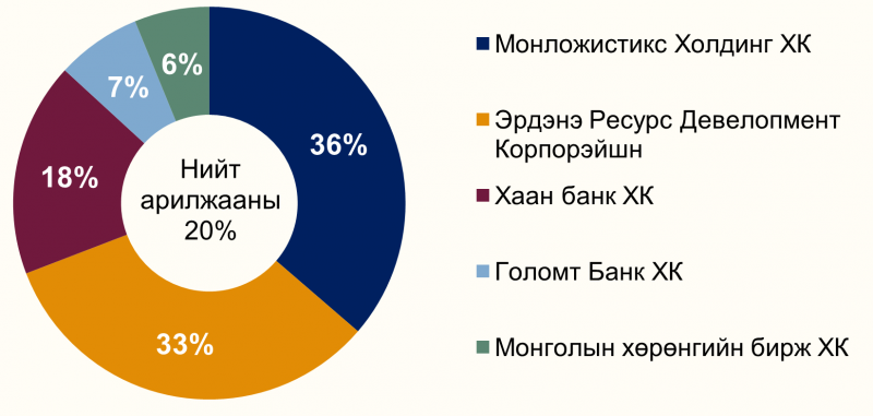 Монголын хөрөнгийн бирж дээр долоо хоногийн хугацаанд нийт 11.48 тэрбум төгрөгийн үнийн дүн бүхий 8.5 сая ширхэг үнэт цаас арилжаалагджээ. Үүнээс Монложистикс Холдинг ХК, Эрдэнэ Ресурс Девелопмент Корпорэйшн, Хаан Банк, Голомт Банк ХК, болон Монголын хөрөнгийн бирж ХК арилжааны үнийн дүнгээр тэргүүлсэн байна. Мөн тус хугацаанд нийт нэг удаагийн багцын арилжаа зохион байгуулагджээ. Тодруулбал: