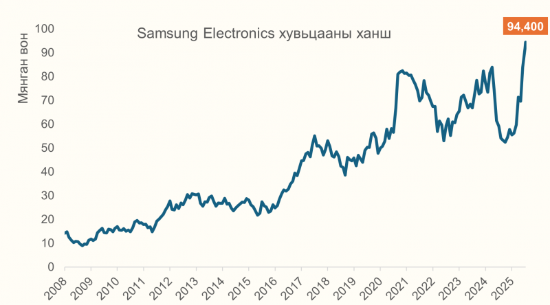 ⇒ "SAMSUNG ELECTRONICS”-ИЙН ХУВЬЦАА ТҮҮХЭН ДЭЭД ЦЭГТЭЭ ХҮРЧЭЭ.