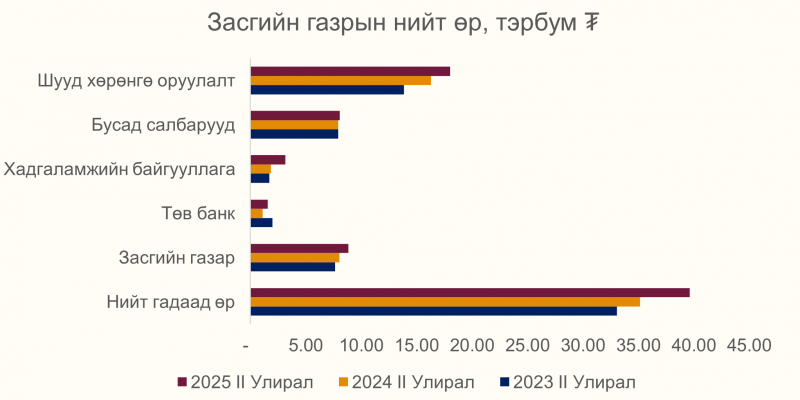 ⇒ ЗАСГИЙН ГАЗРЫН НИЙТ ӨР 2025 ОНЫ II УЛИРАЛД ₮35.5 ИХ НАЯДАД ХҮРЧЭЭ.