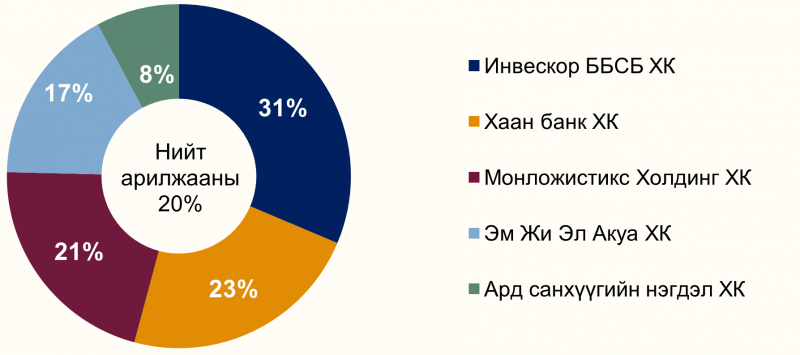 Монголын хөрөнгийн бирж дээр долоо хоногийн хугацаанд нийт 11.66 тэрбум төгрөгийн үнийн дүн бүхий 7.5 сая ширхэг үнэт цаас арилжаалагджээ. Үүнээс Инвескор ББСБ ХК, Хаан Банк ХК, Монложистикс Холдинг ХК, Х Эм Жи Эл Акуа ХК, болон Ард санхүүгийн нэгдэл ХК арилжааны үнийн дүнгээр тэргүүлсэн байна. Тус хугацаанд 2 удаагийн багцын арилжаа зохион байгуулагджээ. Тодруулбал: