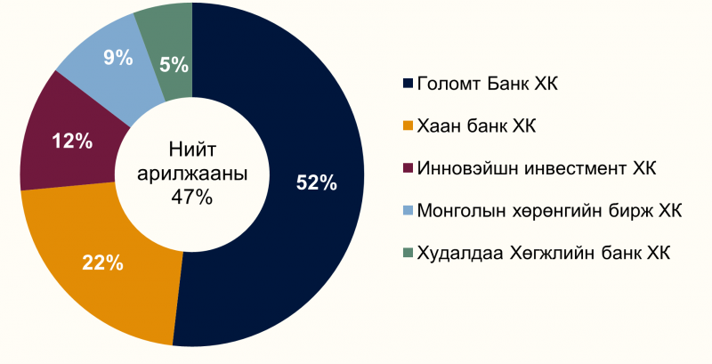 Монголын хөрөнгийн бирж дээр долоо хоногийн хугацаанд нийт 6.4 тэрбум төгрөгийн үнийн дүн бүхий 7.4 сая ширхэг үнэт цаас арилжаалагджээ.Үүнээс Голомт Банк ХК, Хаан банк ХК, Инновэйшн инвестмент ХК, Монголын хөрөнгийн бирж ХК, болон Худалдаа Хөгжлийн банк ХК арилжааны үнийн дүнгээр тэргүүлсэн байна. Тус хугацаанд нийт 1 удаагийн багцын арилжаа зохион байгуулагджээ. Тодруулбал:
