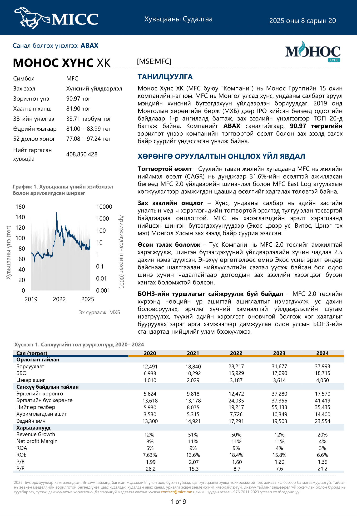 MICC нь Монос Хүнс ХК (MSE:MFC)-ын хувьцааны судалгааг танилцуулж байна.