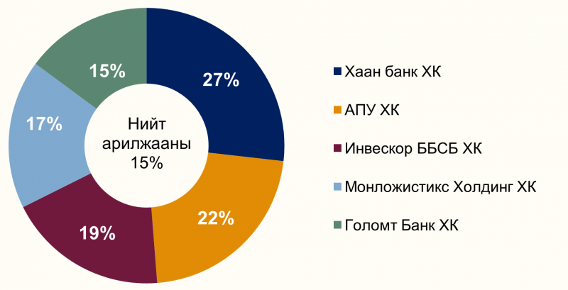 Ар баянхангай ХК-ийн (ABH) 4.2 мянган ширхэг үнэт цаас нэгжийн 750 төгрөгөөр буюу нийт 3.2 сая төгрөгөөр;